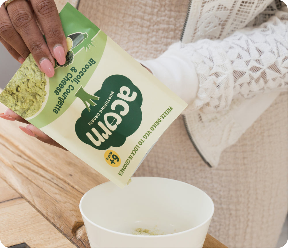 From all that learning and love, acorn grew from an idea to a reality. We developed our first range of nutritionally balanced weaning meals. Made from a variety of vegetables and gently freeze-dried to lock in flavour, texture and nutritional goodness